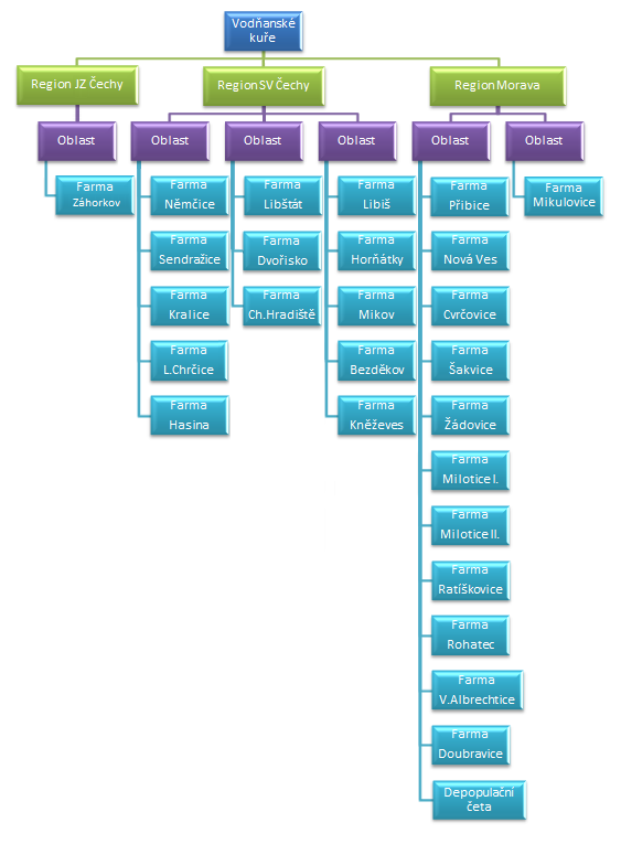 Společnost pro tyto účely spravuje 26 farem. Tamní kuřata pochází z českých chovů a jsou živena krmnými směsmi od českých výrobců. Kvalita a zdraví celého chovu jsou zajištěny přísným veterinárním dohledem při líhnutí i výkrmu kuřat. Důležitým faktorem je též standardizovaný výkrm kuřat na všech farmách při přísném dodržování hygienických a bezpečnostních předpisů. Pouze tak je možné zajistit zdraví chovů a nejvyšší kvalitu produkce pro naše zákazníky.